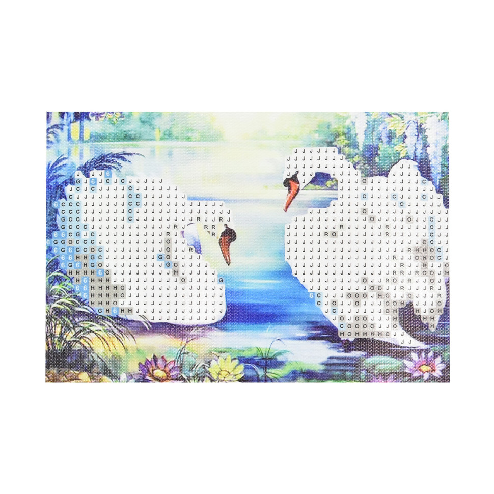 Алмазна мозаїка Strateg ПРЕМІУМ Лебеді на воді без підрамника розміром 10х15 см (YAB24667)