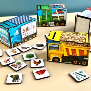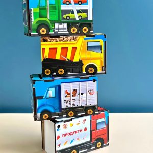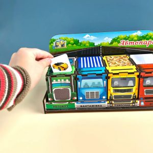 Ігровий сортер-комод – захоплива подорож у світ вантажного транспорту! Ця розвивальна гра створена для знайомства малюка з різними типами вантажівок. У комплект входять 4 спеціалізовані машинки та 40 карток із зображеннями речей і персонажів, які потрібно правильно розподілити відповідно до призначення кожного транспорту.