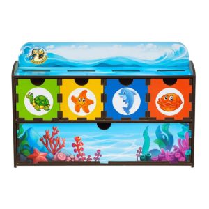 Цей захоплюючий комод створений для розвитку навичок сортування у дітей. У ньому передбачено 4 різнокольорові шухлядки для розподілу фігурок за кольором чи зображенням, а також додаткова п’ята шухлядка, у якій зручно зберігати планки для розкладання.