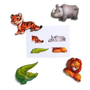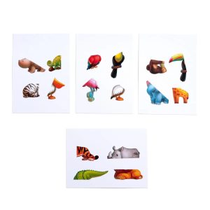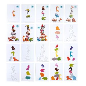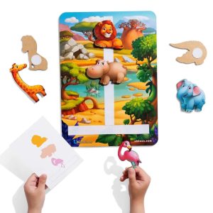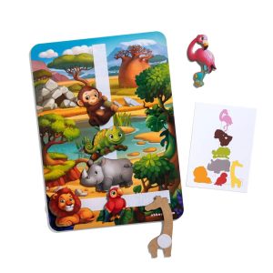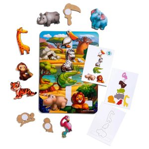 У комплект входить дерев’яна основа з тваринками на липучках та 24 навчальні картки з завданнями різної складності. Завдання для дитини — розмістити тваринок відповідно до прикладу на картці. Теми завдань охоплюють розпізнавання силуетів, контурів, кольорів і просторового розташування об’єктів.