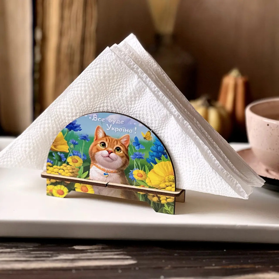 Оригінальна серветниця з милим котиком стане стильним акцентом на вашому столі та додасть затишку оселі.