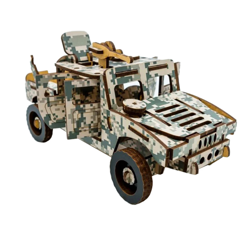 Дерев’яний конструктор “ХАМЕР” — це точна модель відомого військового автомобіля, що складається з 65 деталей. Він неодмінно зацікавить юних шанувальників машин і стане чудовим заняттям, яке поєднує пізнання будови авто з розвитком дрібної моторики.