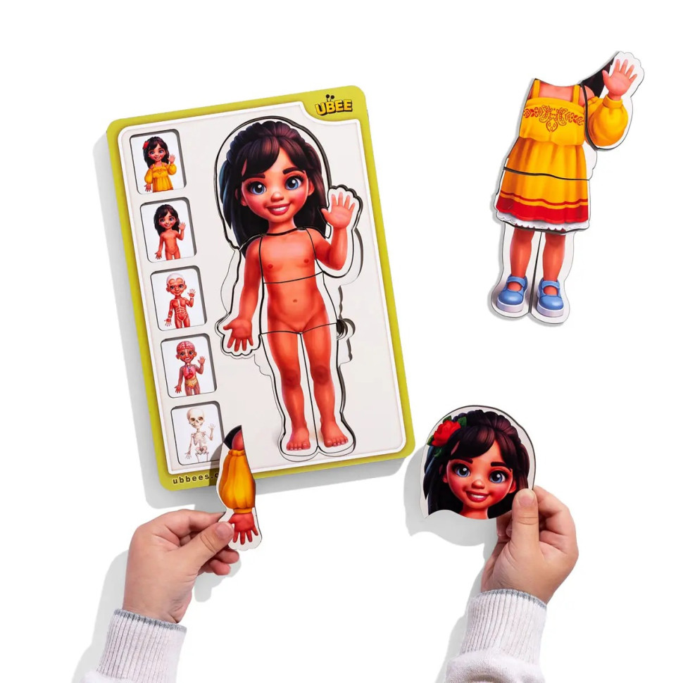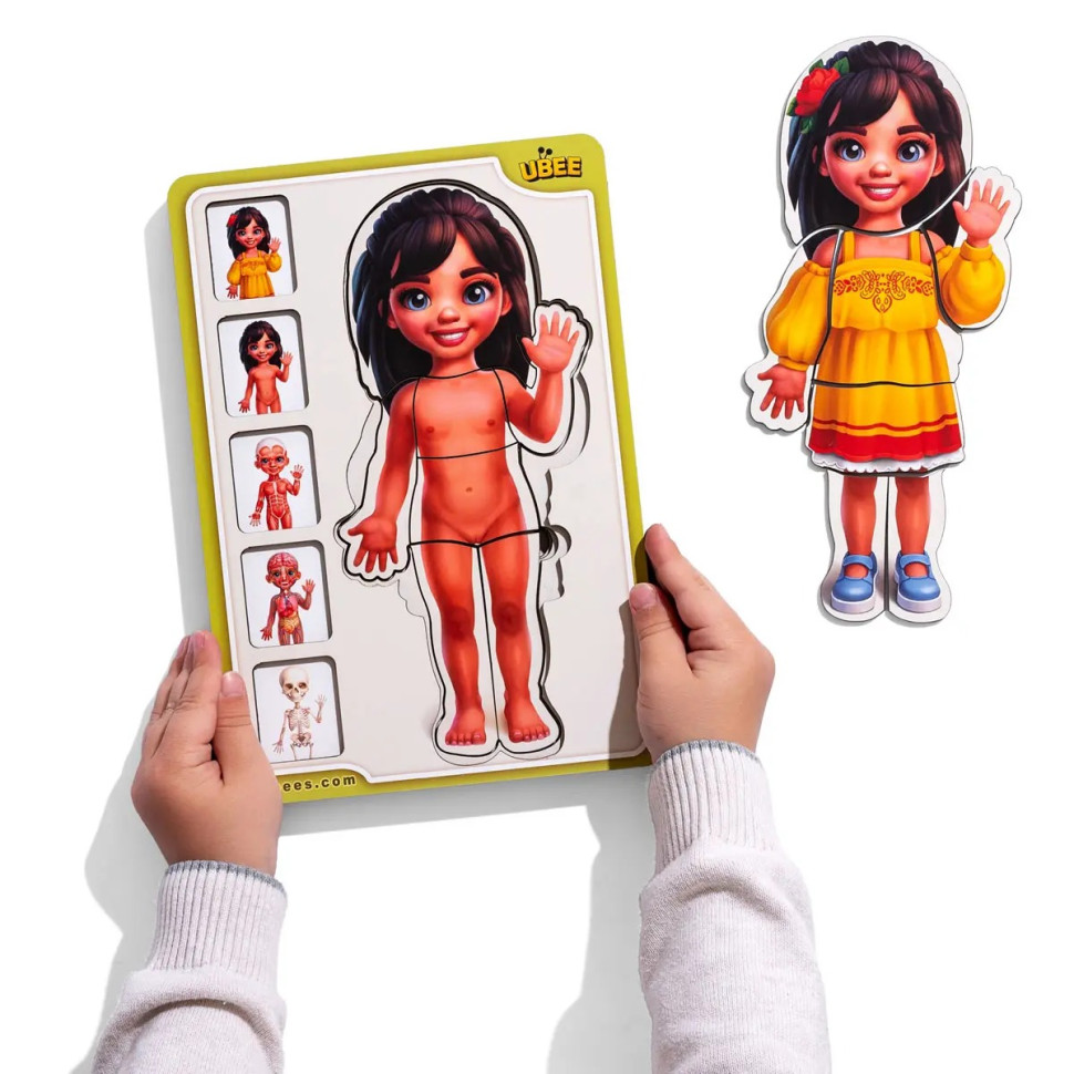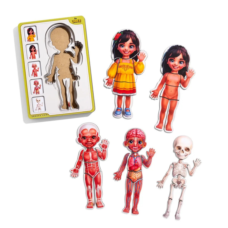 Дерев’яний багатошаровий сортер-пазл “Анатомія людини: дівчинка” від Ubumblebees — пізнавальна гра, яка поєднує навчання з розвагами!