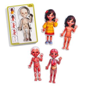 Вивчати будову людського тіла тепер ще цікавіше та захопливіше. Цей дерев’яний пазл із п’яти шарів стане чудовим способом ознайомити дитину з основами анатомії. Кожен шар демонструє окрему систему організму: скелет, м’язи, кровоносну систему, шкіру та зовнішній вигляд у одязі.