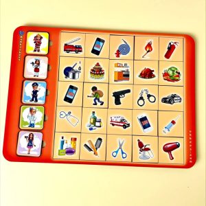 Цей сортер містить планшет із картинками представників 5 різних професій і 25 плашок із тематичними предметами, які дитина має підібрати до кожної професії. Така гра чудово розвиває асоціативне мислення. Плашки зручно використовувати для навчання лічби, а також для додаткових ігор, наприклад, «Меморі» або «5-й зайвий».