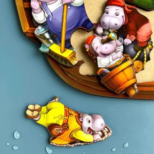 Захоплива логічна гра-пазл, у якій малюк допомагає 13 бегемотикам повернутись на свій корабель. Кожну фігурку легко дістати завдяки зручній формі, а контур корабля залишається незмінним. Завдання дитини — правильно розмістити всіх бегемотиків на свої місця та порахувати їх.
