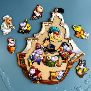 Дерев’яний пазл-вкладиш “Бегемотики-пірати”