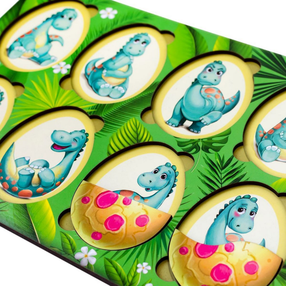 Дерев’яний пазл-вкладиш “Емоції Динозавриків” — це веселий і пізнавальний набір для малюків, що складається з 8 яєчок. Під кожною шкаралупкою ховається маленький динозаврик із власною емоцією — здивуванням, радістю, сумом та іншими. Завдання дитини — уважно роздивитися візерунок на шкаралупі й правильно підібрати її до кожного яйця, адже кожен візерунок — унікальний.