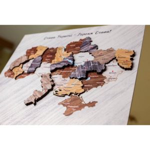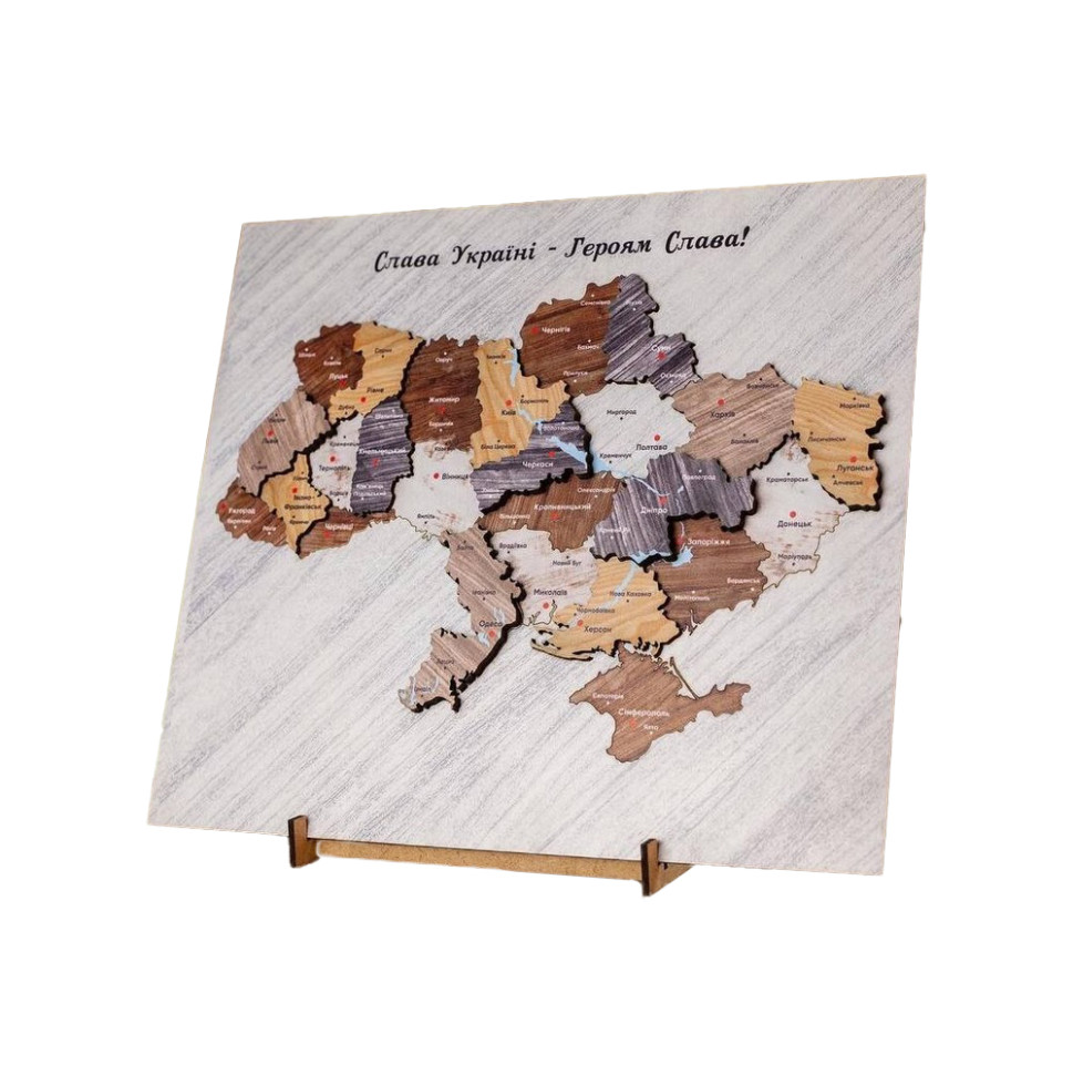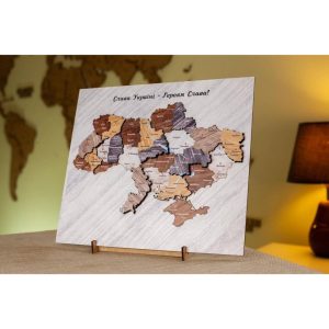 Дерев’яна карта України на підставці — елегантний і практичний подарунок, який гармонійно доповнить інтер’єр як вдома, так і в офісі. Виготовлена з натурального дерева у вигляді двошарової композиції з окремих деталей, вона стане стильним акцентом і підкреслить витончений смак господаря. Завдяки компактним розмірам 310 × 270 мм і зручній підставці, карту легко розмістити на столі, поличці, бюро чи шафі.
