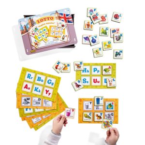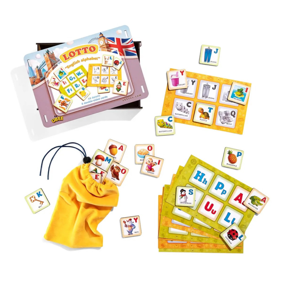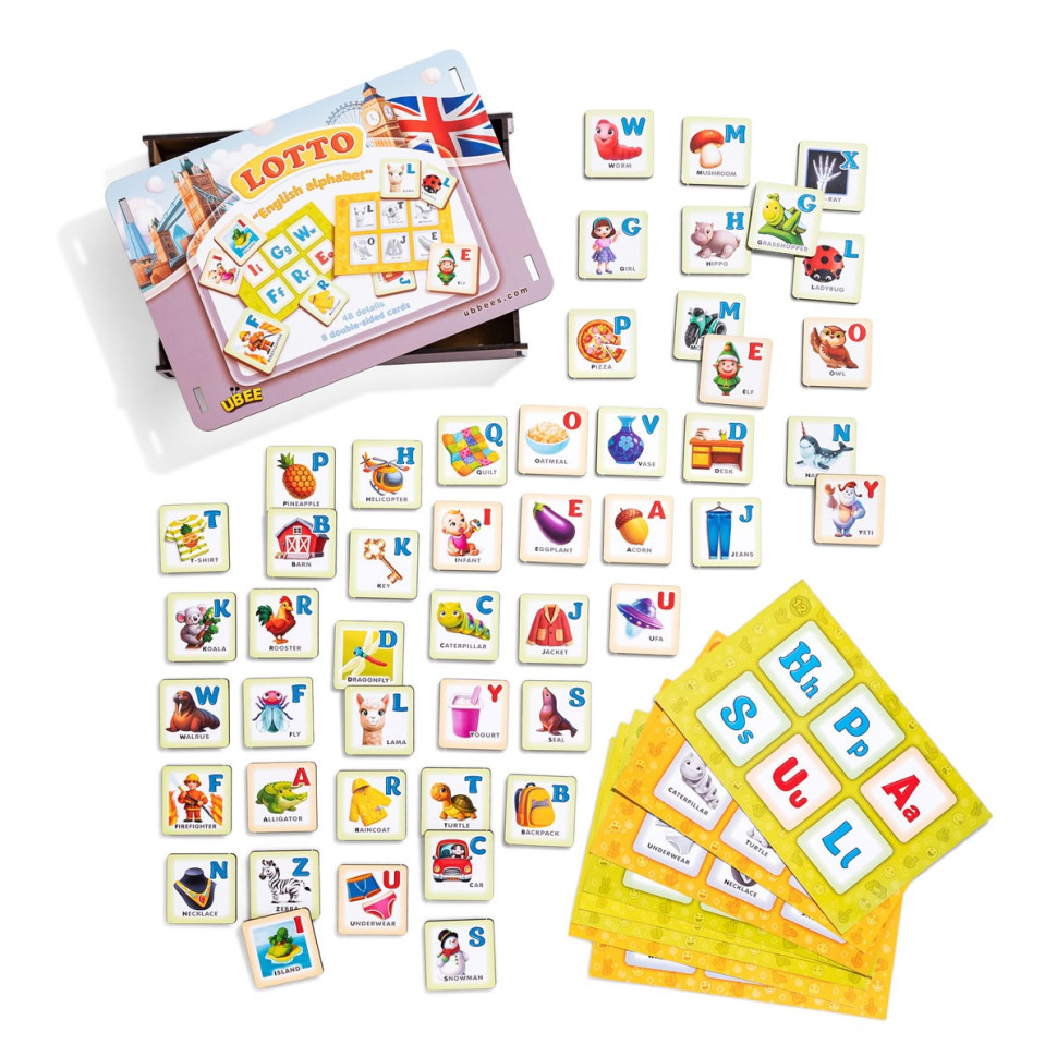 Дитяча розвивальна гра-лото «Англійська абетка» з дерев’яними елементами стане чудовим помічником у вивченні літер.