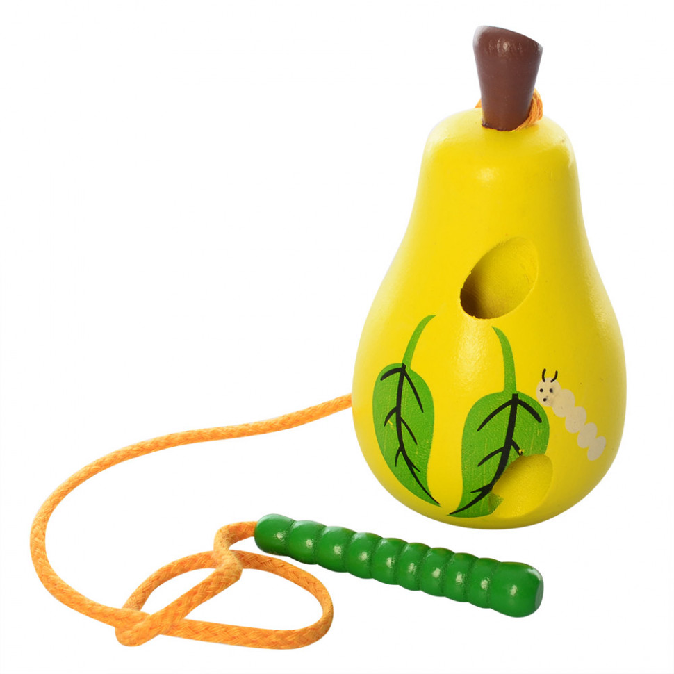 Шнурівка виготовлена з приємного на дотик матеріалу, має яскраве забарвлення та зручну дерев’яну голочку у формі черв’ячка, що робить гру ще цікавішою.