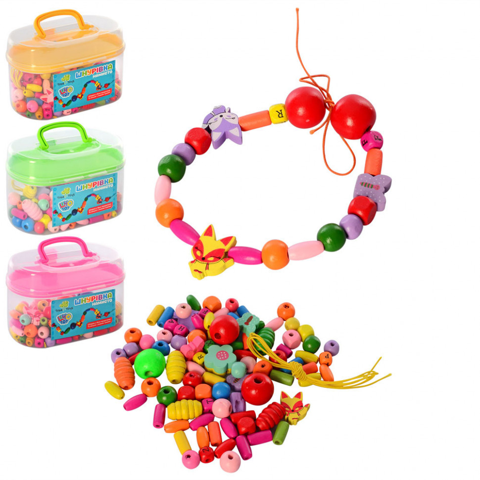 Дерев’яна шнурівка в зручній валізці — чудовий набір для створення намиста власноруч. Граючи з ним, дитина розвиватиме дрібну моторику, зосередженість та терплячість.