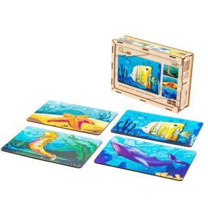 У наборі – 4 пазли із зображеннями морської зірки, рибки, кита та морського коника. Процес складання розвиває уважність, дрібну моторику та посидючість.