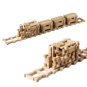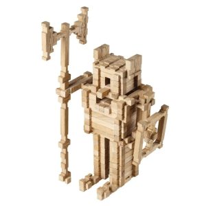 Набір складається з 213 дерев’яних деталей, з яких можна зібрати високу споруду заввишки 45 см. Завдяки продуманій конструкції елементи легко поєднуються паз-в-паз, а готова вежа без зусиль трансформується у модель вікінга, потяга чи будь-який інший об’єкт. У комплекті є детальна покрокова інструкція, що допоможе початківцям швидко освоїти процес складання, а згодом — створювати власні оригінальні проєкти.