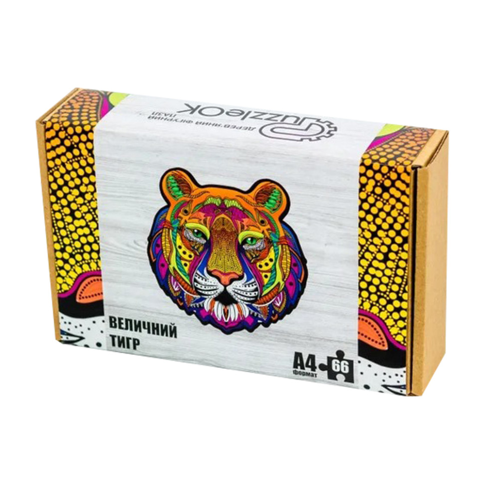 Фігурний дерев’яний пазл A4 Величний Тигр, 66 деталей