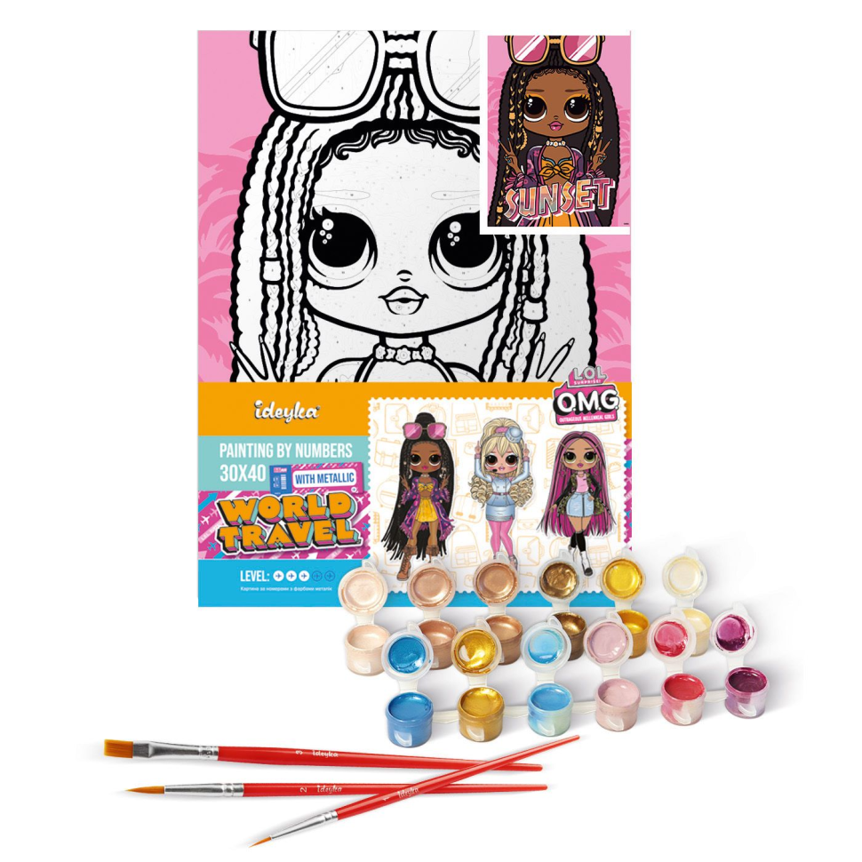 – Палітра пронумерованих акрилових фарб у контейнерах: звичайні та металізовані, до 3-х відтінків.