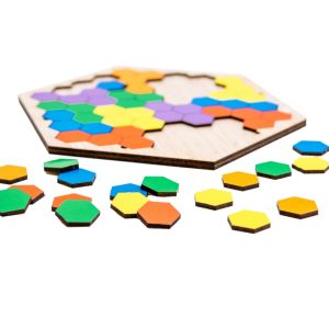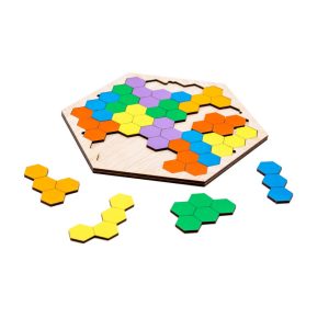 Дерев’яна гра-пазл “Шестикутник” – це проста й водночас захоплива розвага. У наборі: дерев’яна основа та 20 яскравих деталей у формі шестикутників, які можна по-різному поєднувати між собою. Створюйте разом з малюком цікаві візерунки, складайте різні комбінації чи навіть змагайтеся у швидкості складання. Гра чудово розвиває логічне та просторове мислення.