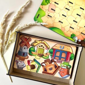 “Панорама: ферма” — це крок від плоских зображень до об’ємного сприйняття дитини. Гра працює як тренажер для розвитку моторики рук: дитина вставляє фігурки під прямим кутом. Маленькі непосиди зможуть потренувати концентрацію, просторове мислення, окомір і збагатити свій словниковий запас. Картки-схеми допоможуть дитині створити картину, придумати сюжет і скласти коротку розповідь. Гра також чудово підходить для вивчення прийменників: наприклад, “постав корову праворуч від кошика і перед парканом”.