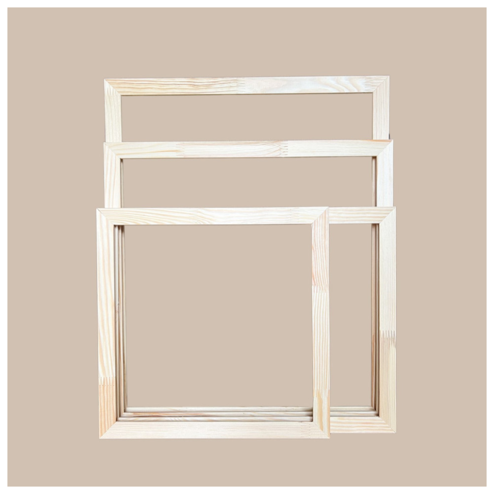 Рамка багетна виготовлена з міцної, якісно висушеної сосни з профілем 12х25 мм. Вона може бути зроблена як зі зрощеної деревини (з попереднім видаленням сучків і склеюванням рейки спеціальним клеєм, що підсилює міцність профілю), так і з суцільної деревини. Завдяки цьому рамка надійно зберігає форму та не деформується з часом. Кути фіксуються за допомогою багетних скоб, що забезпечує жорстке з’єднання. Підходить для картин розміром 40х40 см.