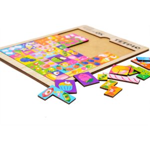 Пориньте разом із дитиною у яскравий світ солодощів із дерев’яним тетрісом “Солодощі”! Ця оригінальна іграшка поєднує у собі улюблену гру тетріс та барвисті зображення різних солодощів, роблячи гру ще більш цікавою та захопливою для малюків.