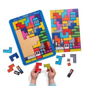Це яскрава та захоплива тетріс-головоломка, яка сподобається усім шанувальникам складання та конструювання. Створюйте різноманітні будиночки, розміщуйте мешканців на спеціальному ігровому полі, рахуйте елементи та впорядковуйте їх за кольорами. Гра тренує логіку, увагу, вміння мислити просторово та розвиває дрібну моторику.