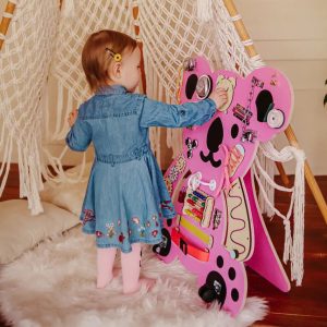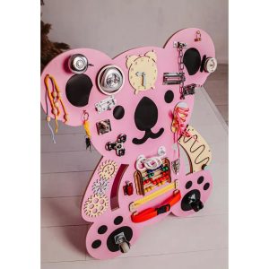 - Довго залишається цікавим, адже один бізіборд поєднує в собі приблизно 20 різних іграшок.