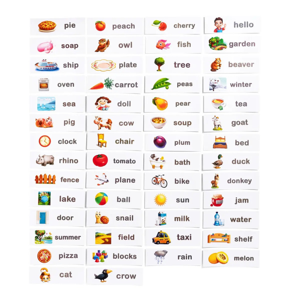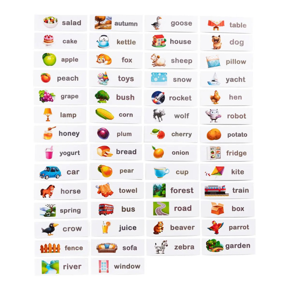 Дитина обирає картку та з літер складає намальоване на ній слово. Під час гри малюк знайомиться з літерами та складами, вчиться рахувати й сортувати літери.