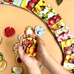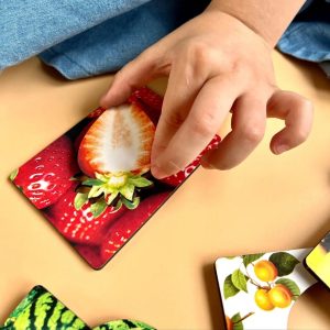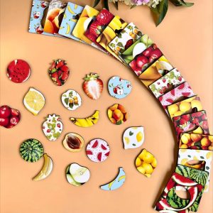 В комплект входят: 18 деревянных дощечек с яркими картинками фруктов.