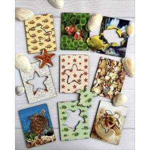 Игра «Морские жители» — обучающие вкладыши для малышей. В комплект входят 18 деревянных дощечек с яркими изображениями различных морских обитателей. Предложите ребёнку найти для каждого морского животного подходящий «домик» — рамку, соответствующую по форме и картинке.