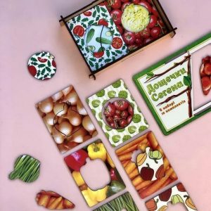 В набор входит: 18 деревянных дощечек с яркими картинками различных овощей.