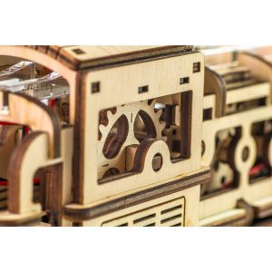Изящная спираль в конструкции и яркие цветные колёса придают паровозу особый шарм и делают его по-настоящему эффектным. Красные акценты внутри деревянной 3D-модели создают неповторимый образ и подчёркивают её характер. Здесь каждый цвет — это не просто декор, а часть истории.