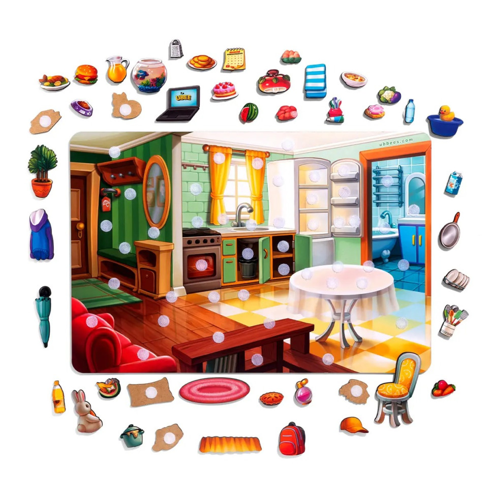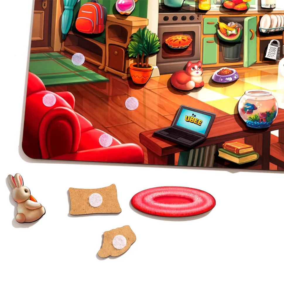 Деревянная игра с липучками «Наведи порядок в комнате и накорми Ваню» – это увлекательная и познавательная игра для детей. Она помогает ребенку научиться организации, поддержанию порядка и ответственности.