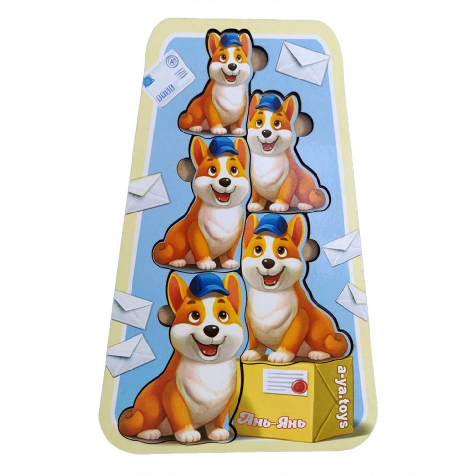 В наборе есть 5 собачек разного размера. Благодаря этой игре легко объяснить ребенку понятие размера и значения слов «большой», «средний» и «маленький».