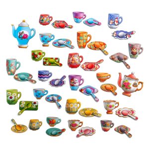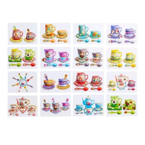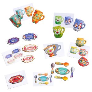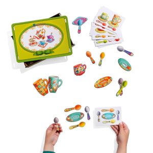 Ребёнку предлагается найти подходящие пары — чашка, блюдце и ложечка должны совпадать по рисунку. Эта игра не только увлекательна, но и помогает освоить понятия «большой» и «маленький», познакомиться с числами и базовыми правилами этикета за столом.