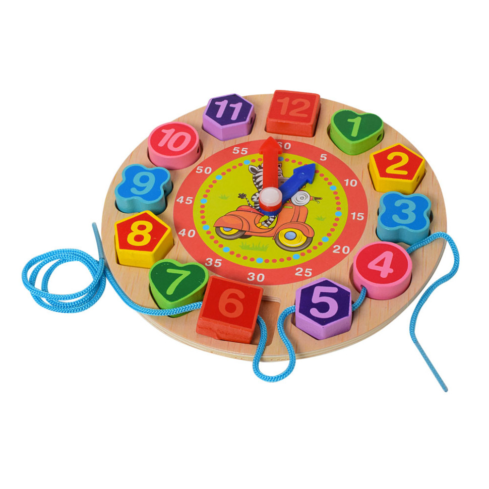 Яркие деревянные часы станут не только полезной игрушкой, которая тренирует пальчики, но и стильным аксессуаром для детской комнаты. Изготовлен из натурального дерева, он имеет приятный природный аромат и абсолютно безопасен для детей. Каждая фигурка имеет отверстия для шнуровки, поэтому детали циферблата превращаются в интересную шнуровку. С такой игрушкой обучение цифрам становится веселым и увлекательным!